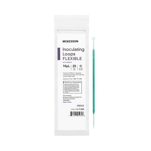 Inoculating Loop with Needle McKesson 10 ?L ABS Integrated Handle Sterile Sterilized by gamma irradiation Disposable for collection and inoculation by streaking or puncturing methods Flexible feel Smooth construction facilitates uniform streaking of culture media Loop combinations feature integrated loop/needle design, eliminating the need for a separate needle