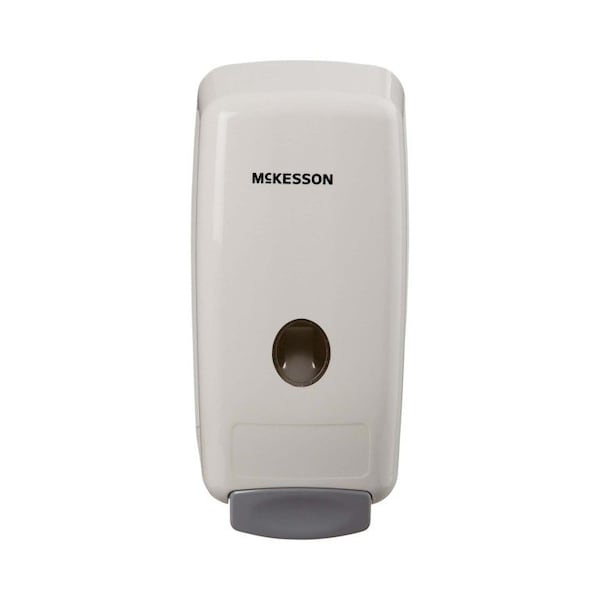 Soap Dispenser McKesson White Plastic Manual Push 1000 mL Wall Mount 1000 mL Clean line design-no seams or 90 degree ridges to collect dirt Push bar is protected-no ridges or openings to collect debris and grime Hinges are recessed and protected-helps to aid in cleanliness New dispensing pump technology so that bag is emptied completely-reduces waste Accommodates McKesson 1000 mL pump dispenser bags Front panel window-helps monitor product use levels Opens without difficulty-refills quickly and easily