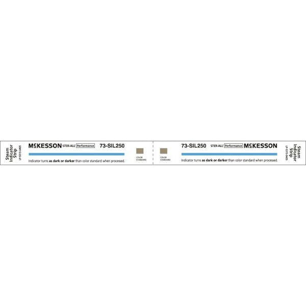 McKesson Sterilization Chemical Indicator Strip Steam 8 Inch For monitoring steam sterilizers operating at 250 - 285 deg. F 121 - 140 deg. C The indicator strip provides distinct color change when exposed to the steam sterilization process 250 8-inch strips per box