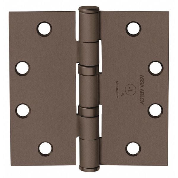Butt Hinge, Brass, Stainless Steel, Oil Rubbed Bronze Finish, 150 lb Load Capacity, 4 Holes per Leaf, No Ligature Resistant, 270 Degrees Range of Motion, 4 in Door Leaf Height, 4 in Frame Leaf Height, 4 in Door Leaf Width, 1 11/16 in Frame Leaf Width, 0.13 in Door Leaf Thickness, 0.13 in Frame Leaf Thickness, Oil Impregnated Bearing Type, Square Corners, Yes Hardware, Features For Flush Door/Frame/Wall Applications