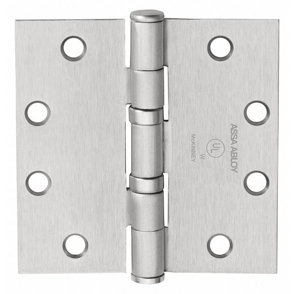 Butt Hinge, Steel, Satin Chrome Finish, 150 lb Load Capacity, 4 Holes per Leaf, No Ligature Resistant, 270 Degrees Range of Motion, 4 in Door Leaf Height, 4 in Frame Leaf Height, 4 in Door Leaf Width, 1 11/16 in Frame Leaf Width, 0.13 in Door Leaf Thickness, 0.13 in Frame Leaf Thickness, Oil Impregnated Bearing Type, Square Corners, Yes Hardware, Features For Flush Door/Frame/Wall Applications