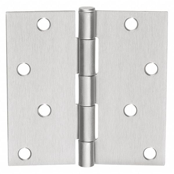 Butt Hinge, Steel, Satin Chrome Finish, 150 lb Load Capacity, 3 Holes per Leaf, No Ligature Resistant, 270 Degrees Range of Motion, 3 1/2 in Door Leaf Height, 3 1/2 in Frame Leaf Height, 3 1/2 in Door Leaf Width, 1 7/16 in Frame Leaf Width, 0.13 in Door Leaf Thickness, 0.13 in Frame Leaf Thickness, Plain Bearing Type, Square Corners, Yes Hardware, Features For Flush Door/Frame/Wall Applications, For Low Frequency Doors, Where Doors are Beveled Edge on Hinge Side, Specify T4314 or T4714