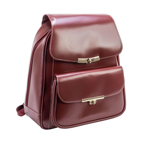 McKlein 14 in. Kendall Leather Business Laptop Tablet Backpack, Red