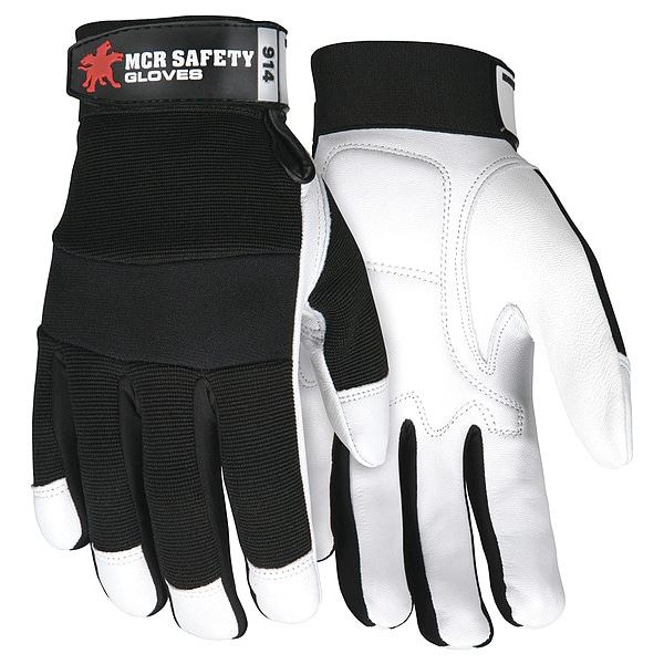 914 Mechanics Gloves, Goatskin Palm, Spandex Back, S, Black/White