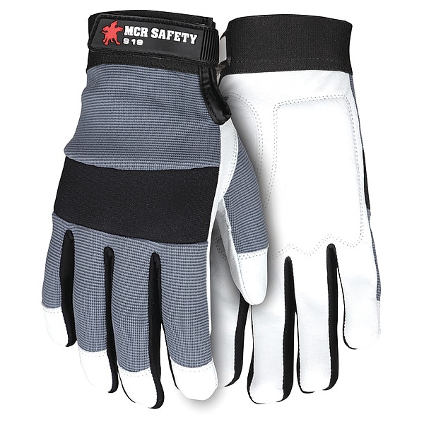 919 Mechanics Gloves, Goatskin Palm, Nylon, Spandex Back, M, Gray/White