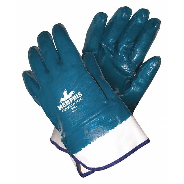 Coated Gloves, Nitrile, Smooth, Full, 0 Abrasion Level, Blue, L 1 PR