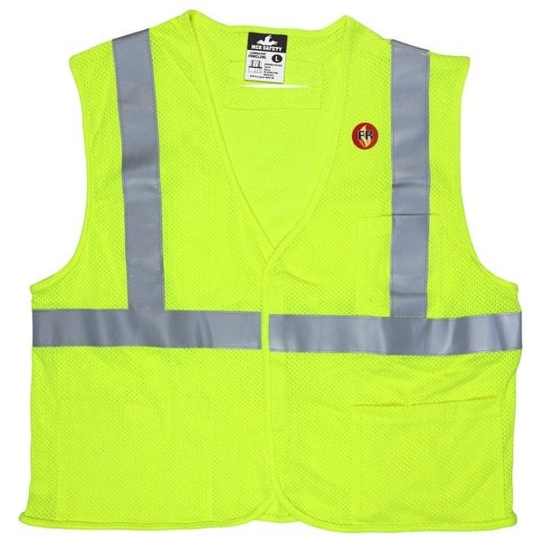 MCR Safety stocks a variety of ANSI rated safety vests for your high visibility needs. With an assortment of styles and colors, you can choose a garment that ensures that you show up in a variety of complex backgrounds. It can be a matter of life or death, so be seen in MCR Safety's Hi-Vis apparel. The FRMCL2ML is a flame resistant safety vest made with GlenGuard mesh lime modacrylic/aramid blended fabric with FR reflective stripes. The FRMCL2ML vest features three pockets, D-Ring access slot on The back, durable gray binding and a hook and loop front closure. The ANSI Class 2 vest also meets ASTM F1506 and conforms to NFPA 70E- HRC1 specifications with an Arc Rating of 4.6 cal/cm2.