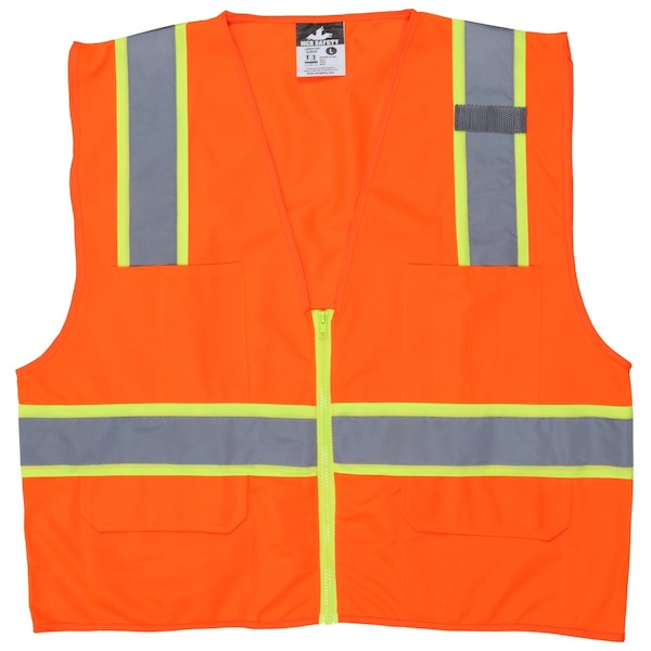 Hi-Vis Safety Vest L Class 2 H Back, , Zipper 6 Pockets, 1 Mic Tab