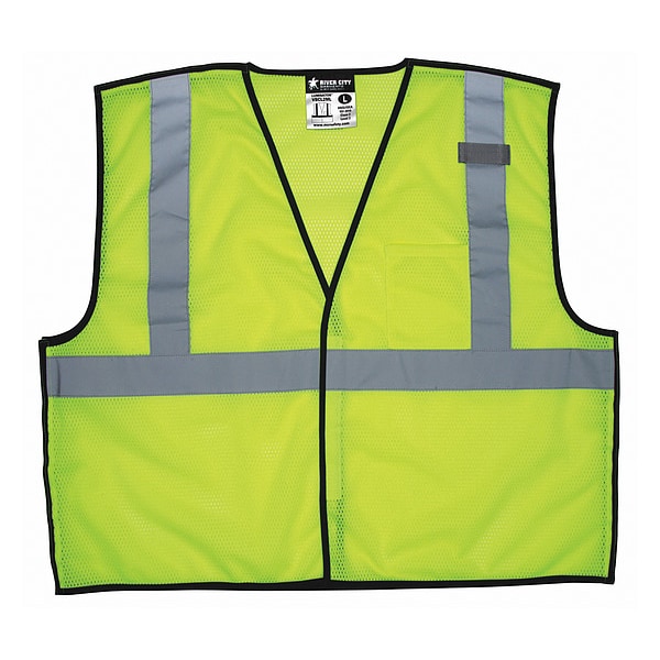 High Visibility Vest, ANSI Class 2, Vest Size 3XL, Traffic Safety Vest Color Yellow/Green, Fits Chest Size 64 in, Gender Men's, Stripe Color Silver, Vest Material Polyester, Vest Closure Type Hook-and-Loop, ATPV Rating Not Rated, Vest Stripe Color Family Silver, Back Stripe Pattern U, Number of Pockets (Inside) 0, Number of Pockets (Outside) 1, Number of Pockets with Closure 0, Features 5 Point Break Away Construction With Hook and Loop Closures, Economy Vest Option Made of Cool Mesh Material
