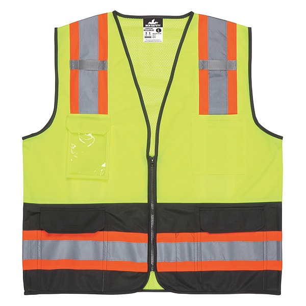 High Visibility Vest, ANSI Class 2, Vest Size S, Traffic Safety Vest Color Yellow/Green, Fits Chest Size 47 in, Gender Men's, Stripe Color Orange/Silver, Vest Material Polyester, Vest Closure Type Zipper, ATPV Rating Not Rated, Vest Stripe Color Family Orange/Silver, Back Stripe Pattern U, Number of Pockets (Inside) 3, Number of Pockets (Outside) 4, Number of Pockets with Closure 3, Features 1 Clear ID Pocket, 2 Mic Tabs, Standards ANSI/ISEA 107