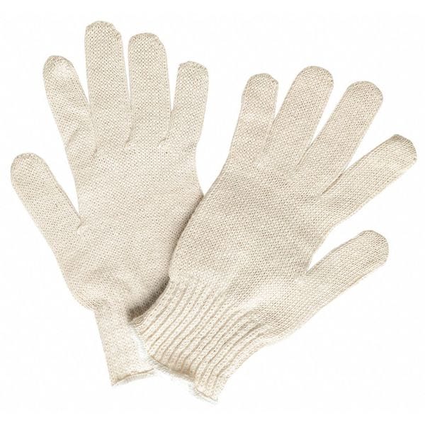 Knit Gloves, Cotton Polyester Blend, None Uncoated, White, M, 12 PK