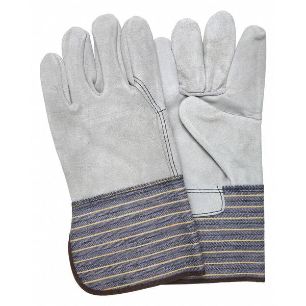 Leather Gloves, Cowhide, Gauntlet Cuff, Wing Thumb, Full Finger, Gray, L, 12 PK