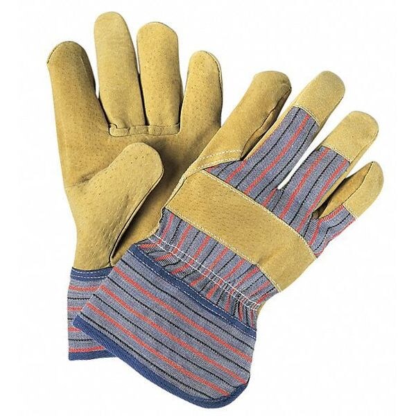 Leather Palm Gloves, Rubberized Safety Cuff Cuff, Wing Thumb, L, 12 PK