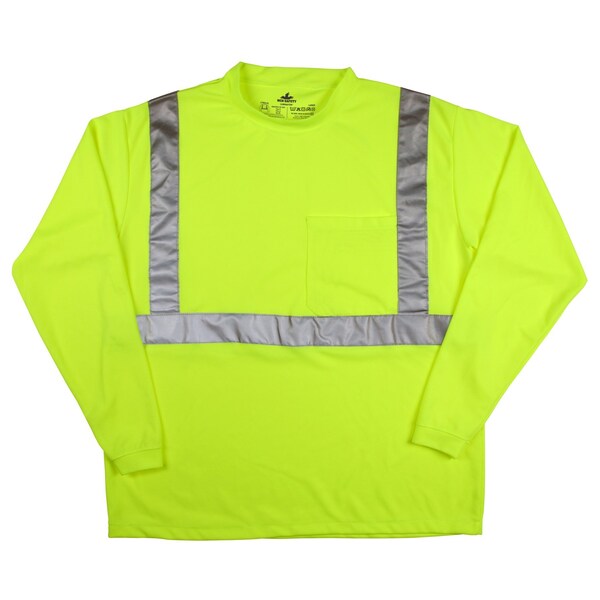 Long Sleeve T-Shirt, Class 2, Type R, Polyester, Fluorescent Lime, XL