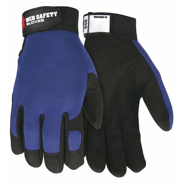 Mechanics Gloves, Hook-and-Loop, Spandex Back, Black/Blue, L