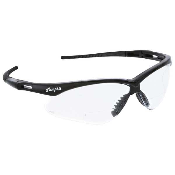 Memphis Reader Safety Glasses, Black Wraparound Frame, 2.0 Diopter, Clear Lens, Universal