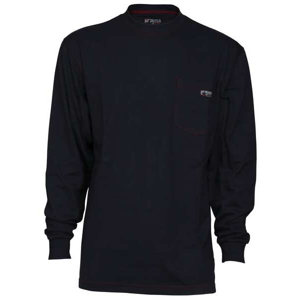 ATPV Rating 10.6 cal/sq cm, Arc Flash PPE Category 2, Collar Style Crew Neck, Color Navy Blue, Fabric Weight 6.5 oz, Features 100 Percent FR Cotton Fabric, Lightweight, Closure Type None, Gender Men's, High-Visibility No, FR Long Sleeve Shirt, Maximum Chest Size 46 in, Minimum Chest Size 44 in, Number of Pockets 1, Pocket Location Chest, Size L, Sleeve Length 26 in, Sleeve Length Type Long