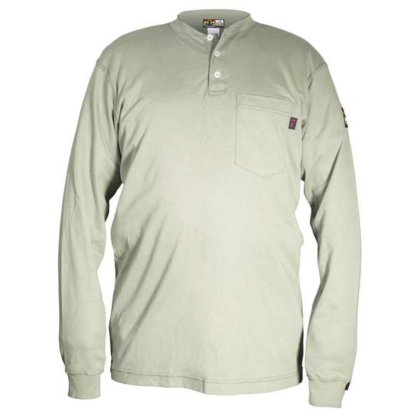 ATPV Rating 9.6 cal/sq cm, Arc Flash PPE Category 2, Collar Style Henley, Color Tan, Fabric Weight 7 oz, Features 100 Percent Cotton FR Interlock Knit Shell, 3 Button Placket Front, Hi-Temperature FR Poly Buttons, Rib Knit Collar and Cuff, Closure Type Buttons, Gender Men's, High-Visibility No, FR Long Sleeve Shirt, Material Trade Name Max Comfort(TM), Maximum Chest Size 38 in, Minimum Chest Size 36 in, Moisture-Wicking Yes, Number of Pockets 1, Pocket Location Left Chest, Size S
