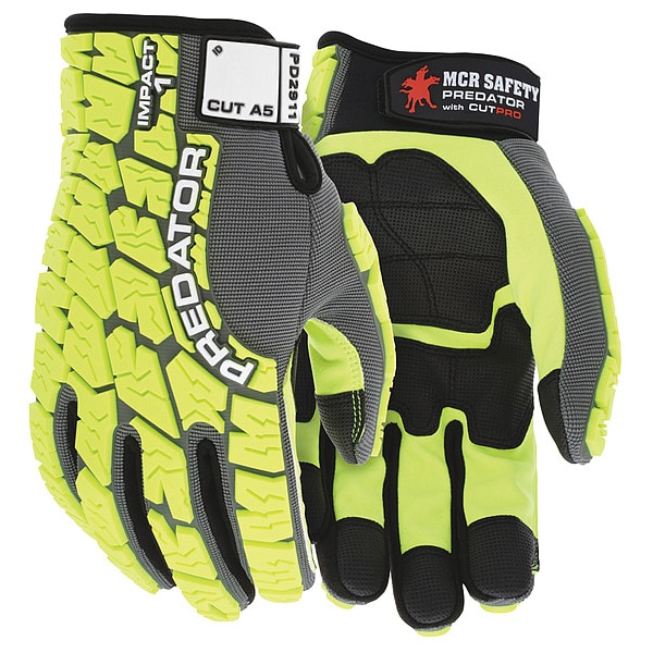 Mechanics Gloves, Additional Hazard Protection Impact-Resistant, Glove Style Mechanics, Cut-Resistance Coverage Palm Side, Palm Style Grip-Coated, Hand Protection Style Glove, ANSI/ISEA Impact Level 1, Backing Style Spandex with TPR Rubber Knuckle Protection, Cuff Style Hook-and-Loop, Insulated No, Palm Material Synthetic Leather, Silicone-Free No, Glove Liner Material HPPE, Glove Back Material Spandex(R), Glove Back Color Lime, Glove Construction Cut and Sewn, Knuckle Protection Material TPR