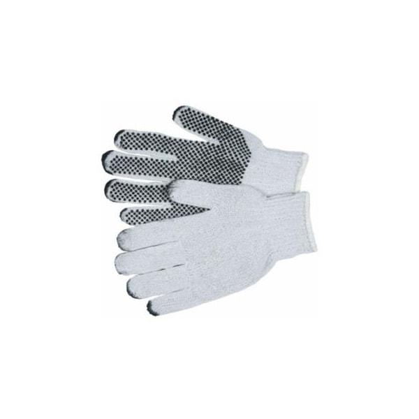 PVC Dot String Knit Gloves, Large, Natural/Black PVC Dots, 12PK