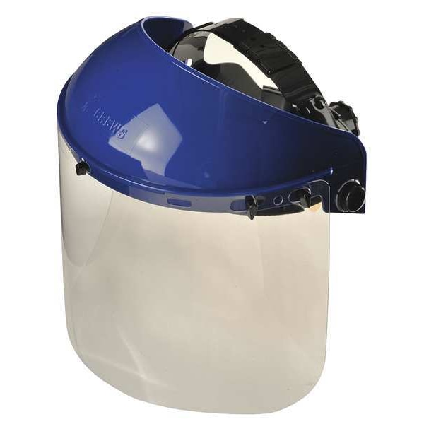 Face Shield, Compatible with Grainger Part Number 2ELR2, Compatible with Manufacturer Model Number 181640, Dielectric Protection No, Face Shield Type Face Shield Assembly, Features Optical Clarity for Medical Use, Pivoting Features Allow Window to Kick Up when Not in Use, Headgear Color Blue, Headgear Material Plastic, Headgear Style Single Crown, Includes Face Shield, Headgear, Includes Anti-Fog Visor Coating No, Includes Anti-Static Visor Coating No, Includes No Visor Coatings Yes