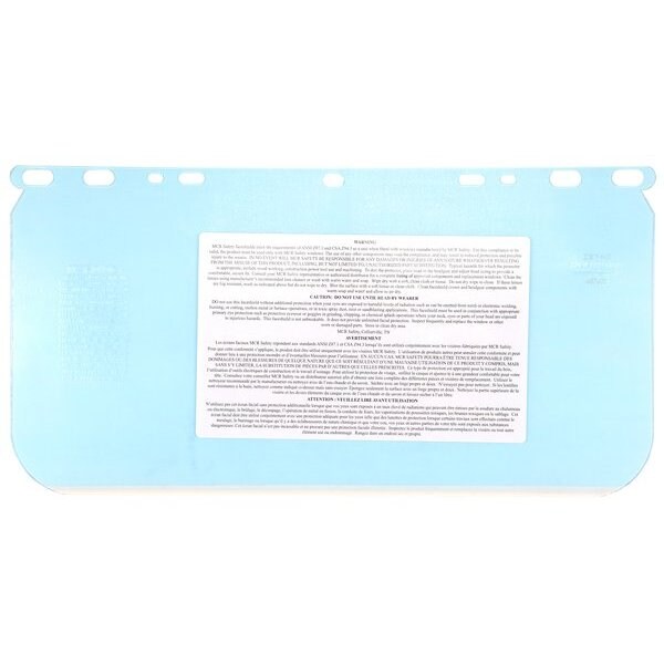 MCR Safety's headgear and faceshields offer superior protection from liquid splashes and flying debris that would oTherwise be damaging to The face. An assortment of brackets and faceshield sizes and materials make it a good bet that you can find an option just right for you. The 487400CSA is a flat Polycarbonate replacement faceshield for our Single Matrix headgear. It measures 8 x 15.5 x .040 inches in thickness.