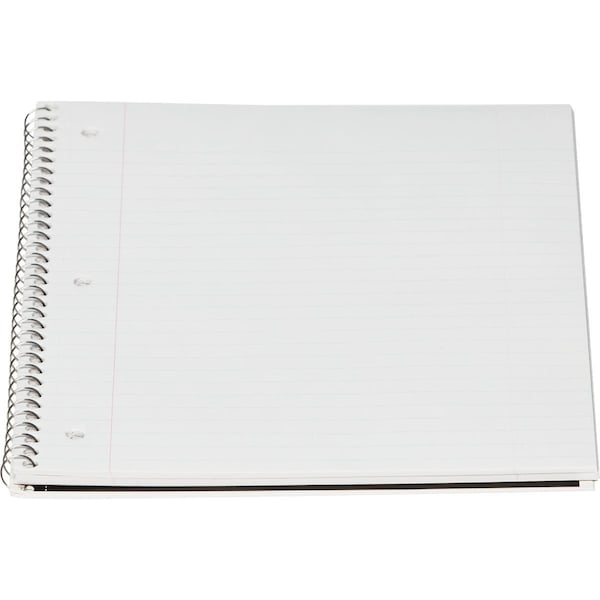 Wide ruled notebook. Side-spiral binding keeps sheets securely connected and lets you smoothly flip pages. Includes 3-hole punches to make it easy to slip into a binder. Wide ruled design for more space in between the lines. Available in assorted colors. Cannot specify color.