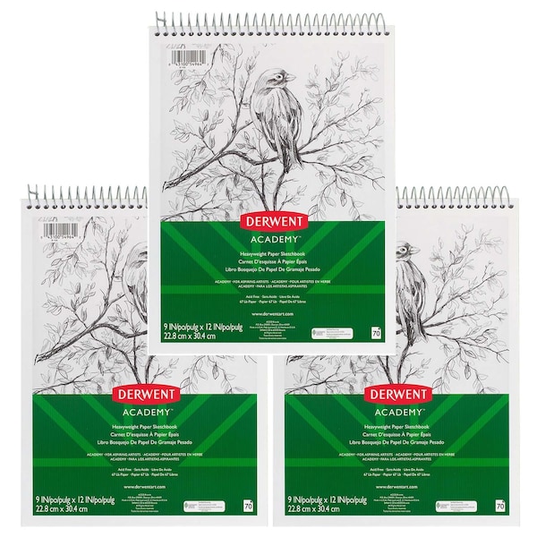 Derwent Academy Wirebound Sketchbook, 9in. x 12in., 70 Sheets Per Book, 3PK