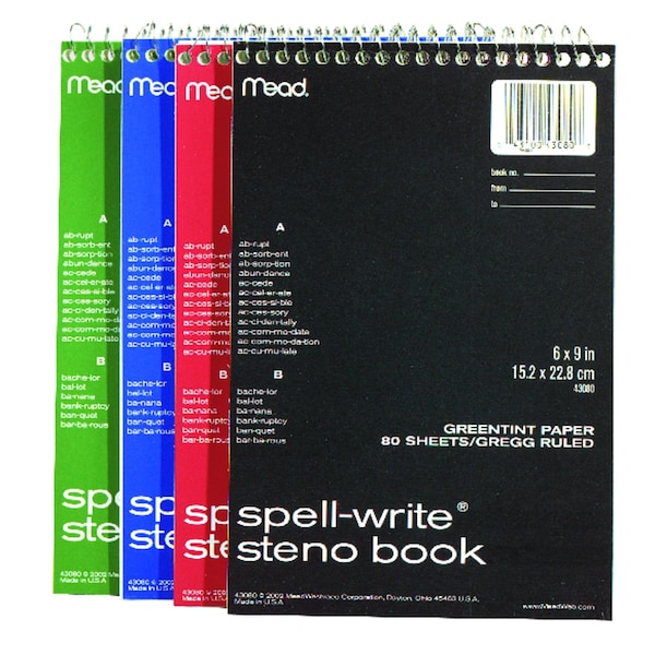 The spell-write Steno Book will come with an old-world spell check system, a cover that let's you review 500 commonly misspelled words.
