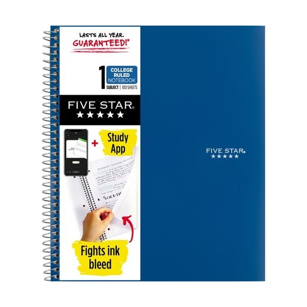 Mead Notebook,1 Subject,100 Shts,College Ruled,Wirebound,BE, NTEBK,5STAR,WIRE,1SUB,8.5X11