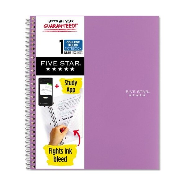 Mead Notebook,1 Subject,100 Shts,College Ruled,Wirebound,PE, NTEBK,5STAR,WIRE,1SUB,8.5X11