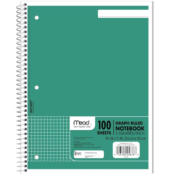 Spiral Notebook, 1 Sub, Graph Ruled, 100