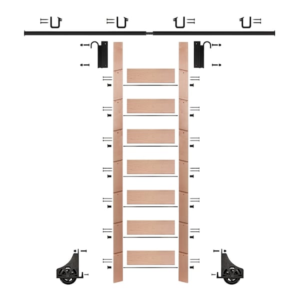 •Ladder package includes: One sliding hook hardware kit, one 92 in. un-finished Red Oak ladder, two 4 ft. Rails, two rail end stops, four rail brackets, one rail connector and required fasteners. Weight Capacity 300 lbs
