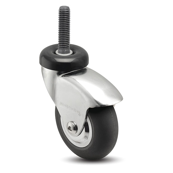 Stem Caster, Swivel Caster, 125 lb Load Rating, 0 to 299 lb, 2 in Wheel Dia., 1 in Wheel Width, Rubber Wheel/Tread Material, 2 43/64 in Mounting Height, Ball, 1 In.-16 x 1 in Caster Stem Size, Threaded, Steel Caster Frame Material, Chrome Plated Frame Finish, Yes Non-Marking, 1 Number of Wheels