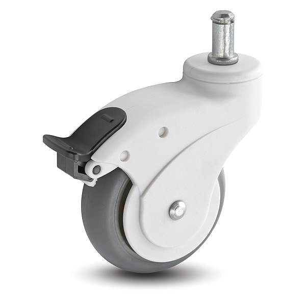 Stem Caster, Swivel Caster, 140 lb Load Rating, 0 to 299 lb, 3 in Wheel Dia., 1 in Wheel Width, Rubber Wheel/Tread Material, 4 19/64 in Mounting Height, Ball, 1-7/16 in x 7/16 in Caster Stem Size, Friction Ring, Nylon Caster Frame Material, Unfinished Frame Finish, Yes Non-Marking, 1 Number of Wheels
