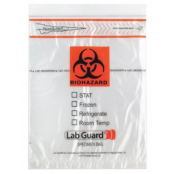 Specimen Transfer Bag, Thickness 1.75 mil, Color Clear, Material LDPE, Overall Height 10 in, Product Type Dual Pouch Specimen Bag, Overall Width 8 in, Autoclavable No, Sterile/Non-Sterile Non-Sterile, Legend Biohazard, Closure Type Zipper, Strength Rating Not Rated, Bags per Roll/Pack 10, Package Quantity 1000