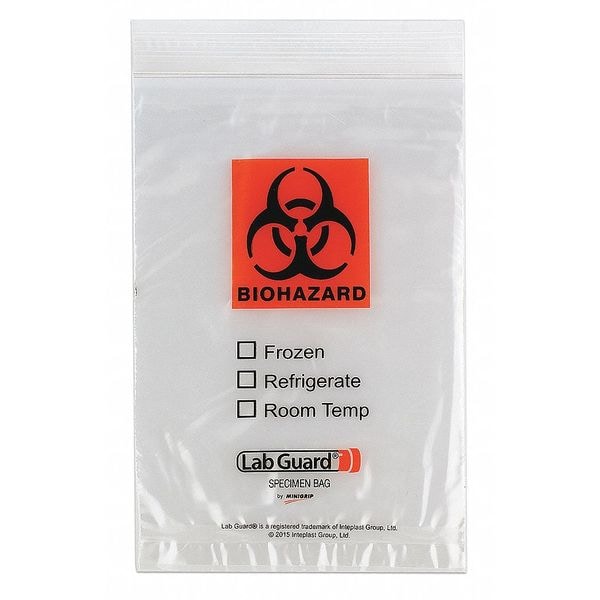 Specimen Transfer Bag, Thickness 1.75 mil, Color Clear, Material LDPE, Overall Height 6 in, Product Type Dual Pouch Specimen Bag, Overall Width 4 in, Autoclavable No, Sterile/Non-Sterile Non-Sterile, Legend Biohazard, Closure Type Zipper, Strength Rating Not Rated, Bags per Roll/Pack 10, Package Quantity 1000