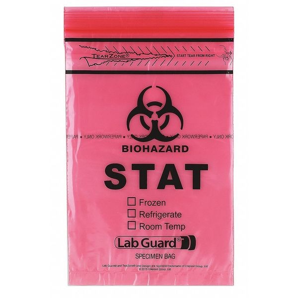 Specimen Transfer Bag, Thickness 1.75 mil, Color Red, Material LDPE, Overall Height 9 in, Product Type Dual Pouch Specimen Bag, Overall Width 6 in, Autoclavable No, Sterile/Non-Sterile Non-Sterile, Legend Biohazard, Closure Type Zipper, Strength Rating Not Rated, Bags per Roll/Pack 10, Package Quantity 1000