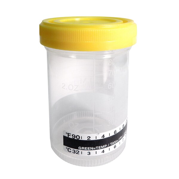 Temprtr Strp Spcmn Cntnr,90mL,Yllw,PK400, Package Quantity 400