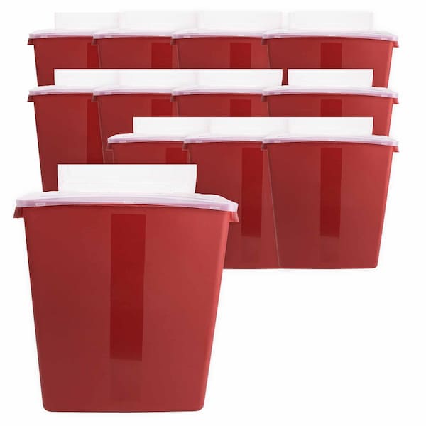 Sharps Container, 3 Gallon, Red/ Black, Large Tortuous Path Lid, 12.5"x13.5"x6in, 12PK