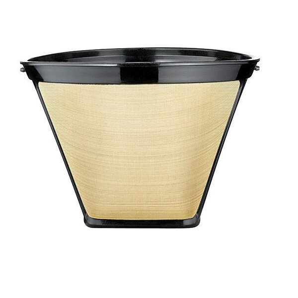 The universal coffee filter is designed to fit all coffee makers using standard 4 cone filters. The filter is made of surgical grade stainless steel mesh which is heat treated to obtain the golden color. Environmentally friendly and dishwasher safe.