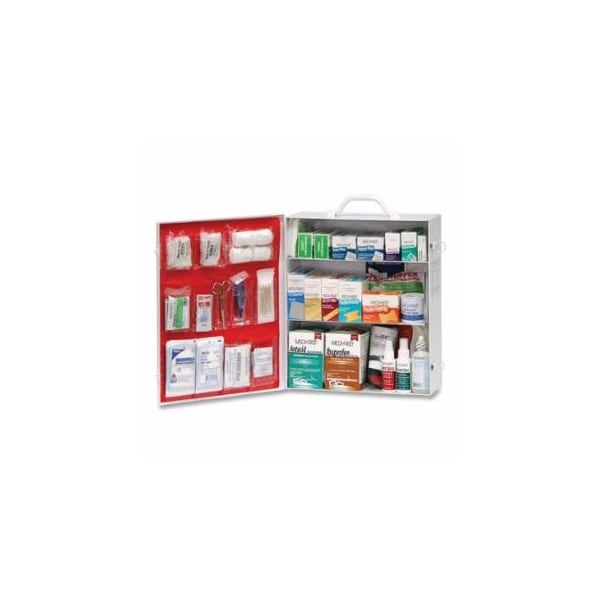 First Aid Kit, Three-Shelf ANSI-B Cabinet for Sm/Med Industrial Work Settings, Metal