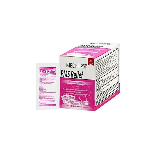 Medi First PMS Relief Caplets, 40 Packs/Box. NDC products are not always manufacturer specific. Actual product appearance may differ from website image