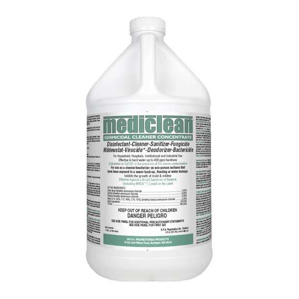 Disinfectant and Sanitizer, Primary Chemical Quat, Container Type Jug, Container Size 1 gal, Ready to Use/Concentrated Concentrated, Recommended Dilution 2 oz./gal., Fragrance Lemon, Cleaner Form Liquid, Surfaces for Use On Hard Non-Porous, Standards EPA Registered