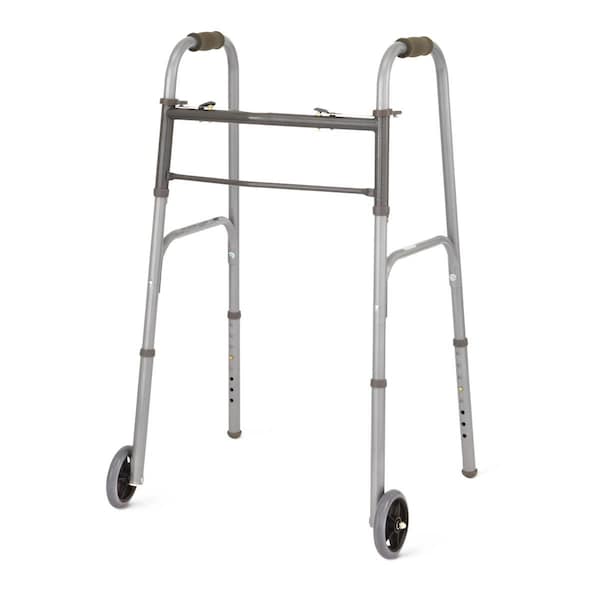 2-Button Folding Walker with 5in Wheels, Steel, 400 lb Wt. Capacity, Assembly Required