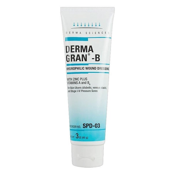 DermaGran-B hydrophilic dressings provides a primary cover or filler for chronic and acute wounds. Contains Derma Sciences zinc-nutrient dressing formulation and balanced pH technology, providing a moist, mildly acidic environment conducive to wound healing.In addition these dressings contain vitamin A, vitamin B6, calcium and magnesium. Use for management of pressure injuries (Stages II - IV), tissue trauma, surgical incisions, partial thickness thermal burns, diabetic and venous stasis ulcers.