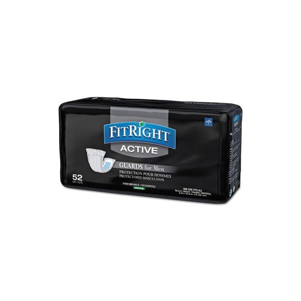 These FitRight Active Male Guards absorbent pads are designed for comfort and discretion. Soft, breathable back sheet provides increased comfort. Super absorbent core with fast acquisition layer for optimal dryness and protection. Adhesive to hold product in underwear. Diaper Style: Pad; Diaper Size: 6in x 11in; Latex Free: Yes; Fastener: Adhesive.