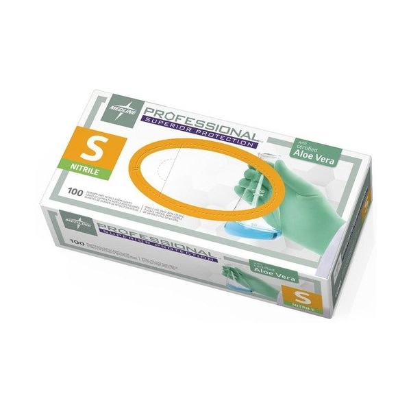 Protect your hands in comfort, with sturdy nitrile exam gloves that have an inner coating of freeze dried aloe vera. Designed specifically with the lab environment in mind, sturdy gloves are the standard in comfort and protection. Tested for use with chemotherapy drugs. All-over texture allows for better grip on small or large items, wet or dry. Gloves provide the proven protection of nitrile while the lightly textured fingertips let you work as if you weren't wearing gloves at all. Style: Disposable, Wrist Style: Beaded Cuff, Materials: Nitrile, Colors: Green.