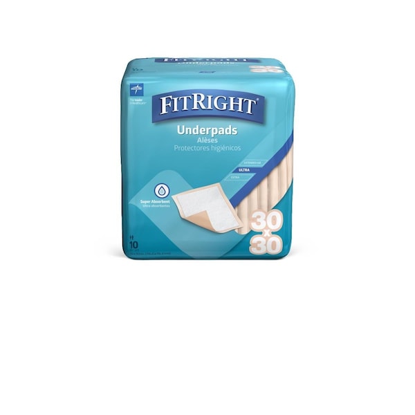 FitRight Fluff/Polymer Underpads, Heavy Absorbency, 30in x 30in, 90PK