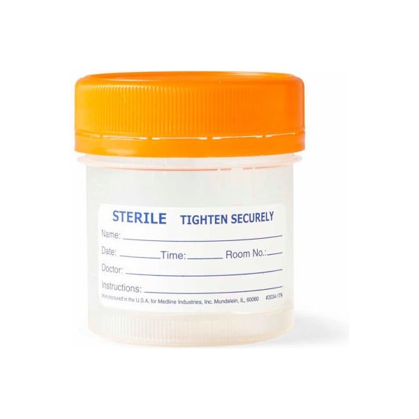 Medline click n close pneumatic tube system specimen container with sterile path, 100ml, 400/case features: the tamper-evident band breaks when seal is broken a secure closure is accomplished with a natural motion, and an audible "click" ensures a tight and secure fit verified by a visual "bar" alignment graduations in both ounces and milliliters patient id label leak-proof pneumatic tube safe with 95 kpa specifications